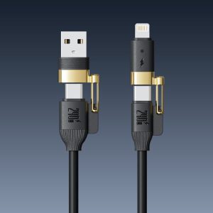 240W 4-in-1 Liquid Silicone Fast Charging Cable Interfaces: USB, Lightning, TYPE-C Material: Silicone Length: 1m-2m Number of Connectors: 4-in-1 Max Output Power: 240W Feature: Fast Charging