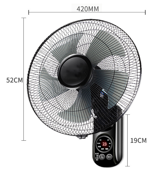 Wall-mounted electric fan Fan type: Wall fan Power supply method: AC power Rated voltage: 220 Rated power: 65W Rated frequency: 50Hz Speed adjustment levels: Three levels Shell material: PP